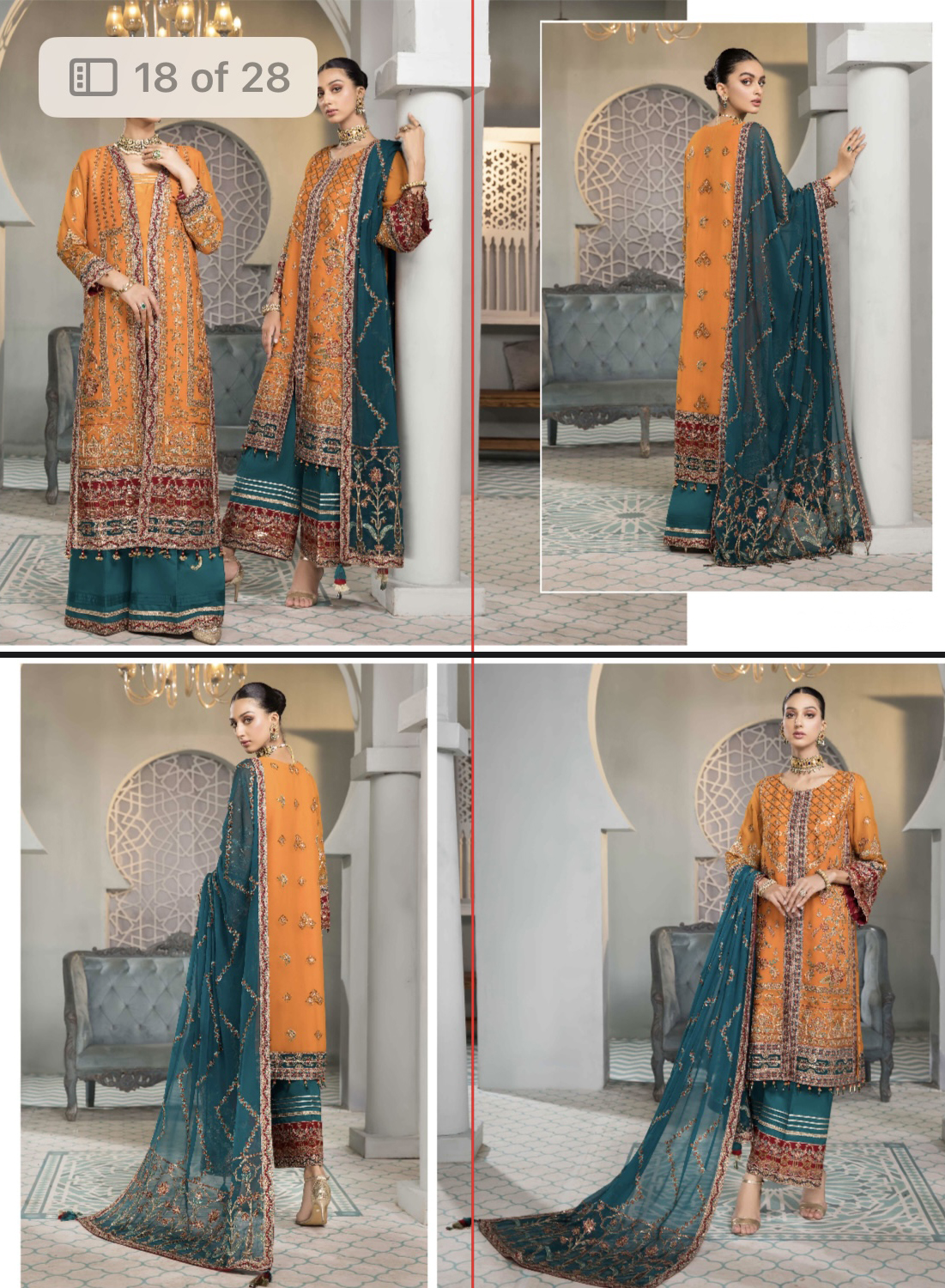 This is fully wedding dress, full embroidery front, back, left and right kali,embroidery chiffon sleeves, also have embroidery patch, embroidery orange pallu dupatta .dyed raw silk trousers